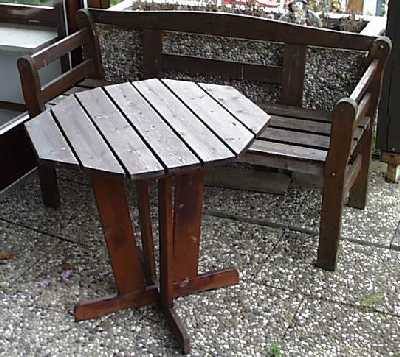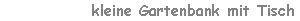 Kleine Gartenbank mit 8-Eck Tisch für nur EUR 60,- abzugeben. Möchten Sie mehr sehen ?? Klicken Sie auf das Bild oben links. Für eine Mailanfrage klicken Sie bitte hier